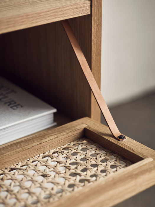 סדרת ה- Cana הינה סדרת ארוניות לאחסון ושידות צד יהפהיפיות המשלבות עץ אלון, זכוכית, רצועות עור לפתיחה וחזית קלועת נצרים יפה ואורירית המעניקה להם מראה טבעי, קליל ואייקוני.